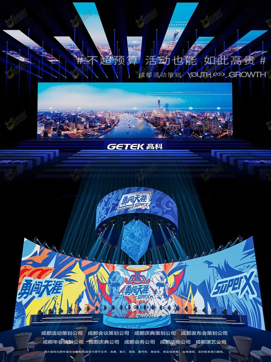 • 前期策劃:需求溝通(明確活動類型/目標(biāo)/預(yù)算/規(guī)模)→ 主題定制(結(jié)合組織文化,如“奮進廿載”“榮耀盛典”)→ 流程設(shè)計(開場表演→領(lǐng)導(dǎo)講話→頒獎環(huán)節(jié)→文藝演出→晚宴互動)→ 場地推薦(合作成都主城區(qū)及周邊縣市高端酒店、會議中心、文化場館);